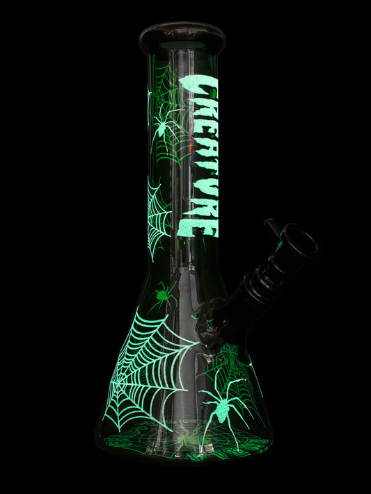 12” Glow-in-the-Dark Spiderweb Water Pipe - Green